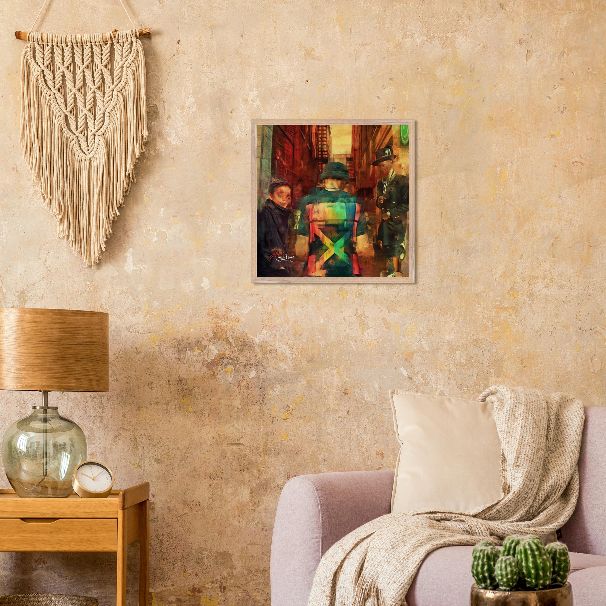 The frame itself is a statement, crafted from responsibly sourced oak or ash wood, showcasing unique natural grain patterns. With a substantial 20mm thickness and width, this frame offers a more premium look than standard options. For your convenience, the artwork comes ready-to-hang with an included hanging kit.